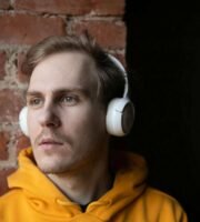 A close-up of a tan leather boot featuring a rugged sole and distinctive stitching. The shoe has a small tag attached by a chain with a logo, and the upper area is padded in black. The focus on detail highlights the texture and branding of the boot.